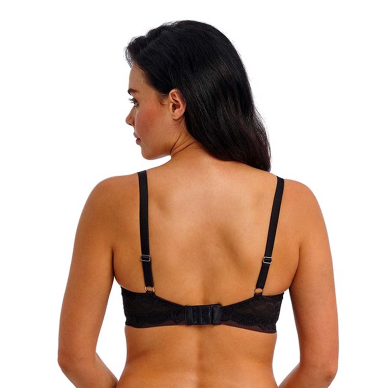 The Abellia Plunge Bra is designed with a plunging neckline and a high apex, creating a beautiful and flattering silhouette. The outer darted cups are made from scallop-edge stretch lace, and the ultra-soft and light push-up pads provide cleavage, uplift, and added dimension. This bra features a graduated foam mould cup for extra push-up from the base while maintaining a thin, light neck edge for a smooth finish. The center front has V-styling, and the lace wing includes an innovative selvedge stretch mesh liner for comfort. You can customize your fit with fully adjustable stretch straps and a soft-touch hook and eye adjustment. A delicate pearl drop effect trim at the center front completes the elegant look.