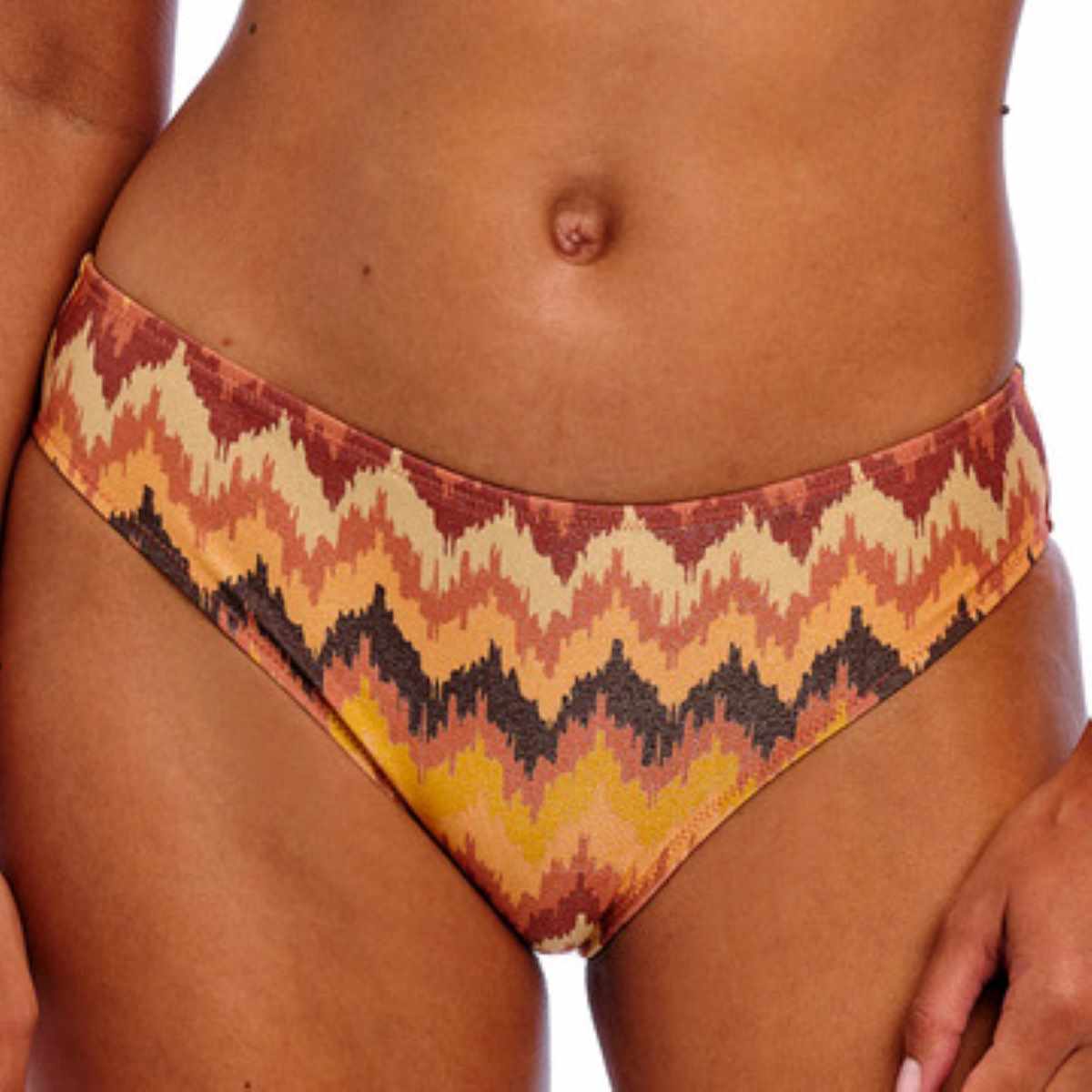 Find your perfect beach day essential with the Arizona Wave Bikini Brief. Designed to sit comfortably on the hips with a flattering cut around the leg and good bottom coverage. The fabric also features subtle metallic gold yarns for a hint of style.