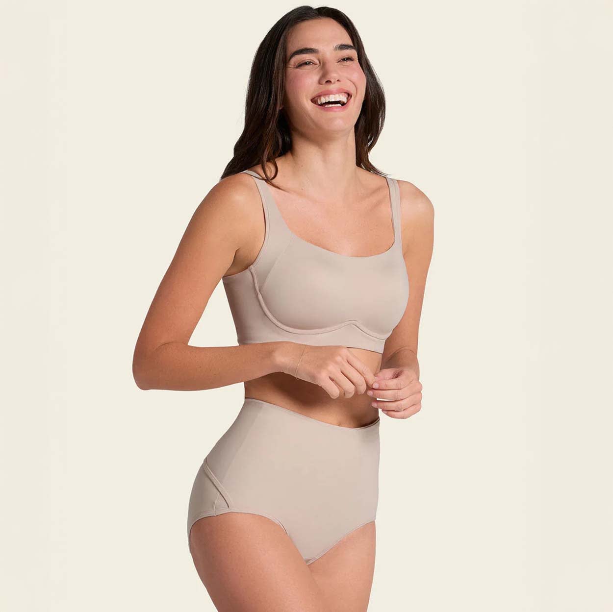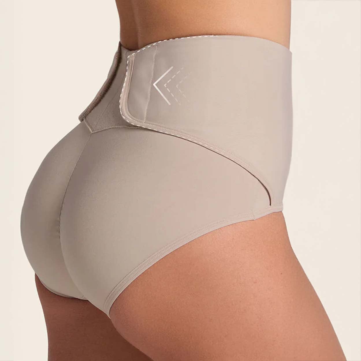 The Bellyflex Firm Compression Adjustable Postpartum Belly Wrap Brief is a classic mid-rise postpartum compression panty designed to help you recover after a C-section or natural delivery. It features a triple-layered compression design with a front panel made of double-layered PowerSlim® for firm tummy support. Wide Velcro sides allow for easy adjustability and a perfect fit. This brief also helps protect C-section incisions and may aid in recovery from a prolapsed bladder. For comfort, it includes soft leg bands and a ruched seam for a natural butt-lifting effect.