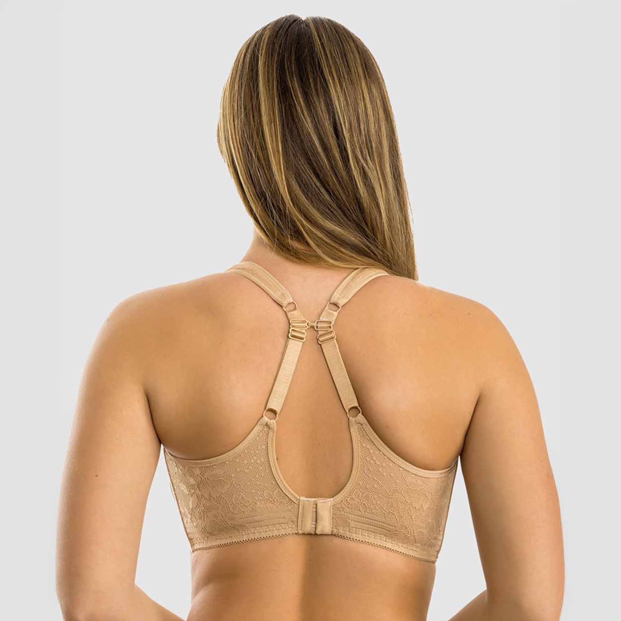 Merging everyday support and comfort with elegant style, the Bliss Convertible Spacer T-Shirt Bra is thoughtfully designed for fuller busts. It features seamless underwire spacer cups that feel light and breathable, yet still deliver on lift and shaping thanks to internal support slings. It perfectly blends practical function with romantic styling, including wide comfort straps with a lace overlay and an elegant lace-topped band and cradle. A convenient J-hook at the back allows you to optionally convert it to a racerback bra.