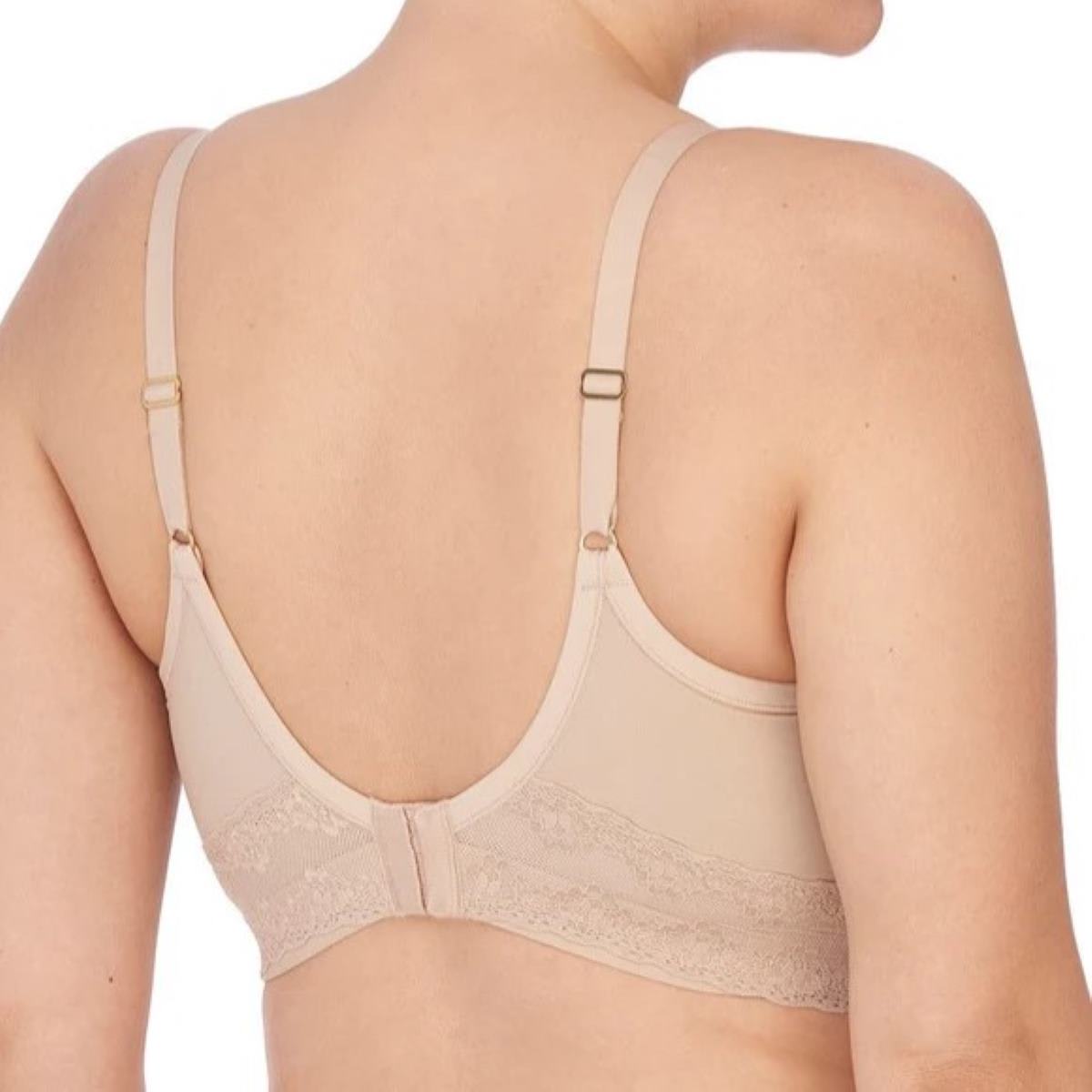 Experience blissful all-day comfort with this lace-trim wireless bralette designed exactly for that purpose. It features stretch foam contour cups that create a smooth, natural shape under clothing, paired with a clean-finish sweetheart neckline that remains invisible under V-neck tops. The longline lace trim beautifully conceals a wide, flat elastic band for added support, while the tall smoothing back enhances comfort and fit. Finished with adjustable shoulder straps adorned with signature gold hardware, this wirefree padded bralette blends softness, support, and style. Plus, it’s OEKO-TEX® Standard 100 certified, ensuring it’s free from harmful chemicals.