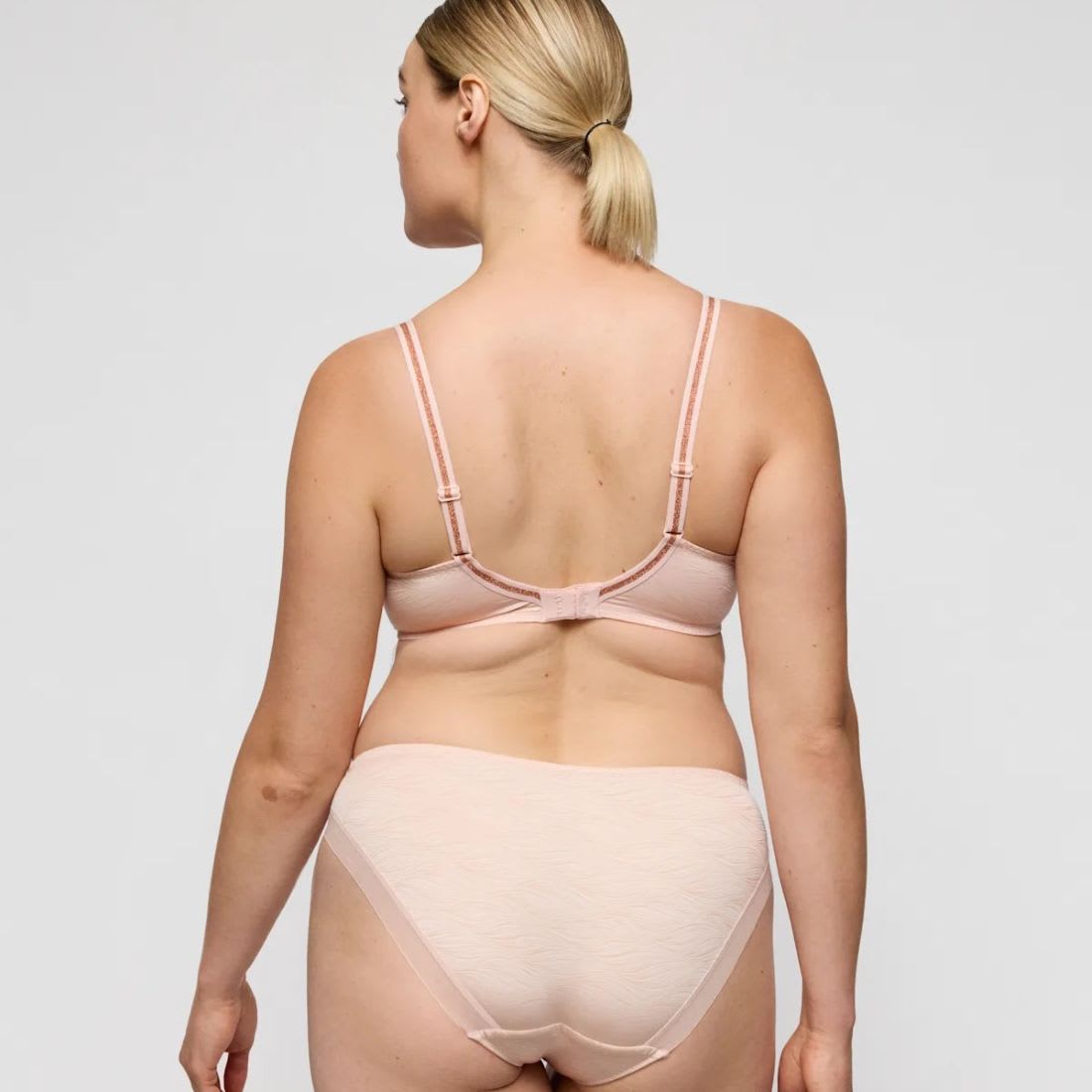 Comfy padded wired bra. Stylish non-transparent design. Stylish straps to hide or show. In pale pink with glitter details.