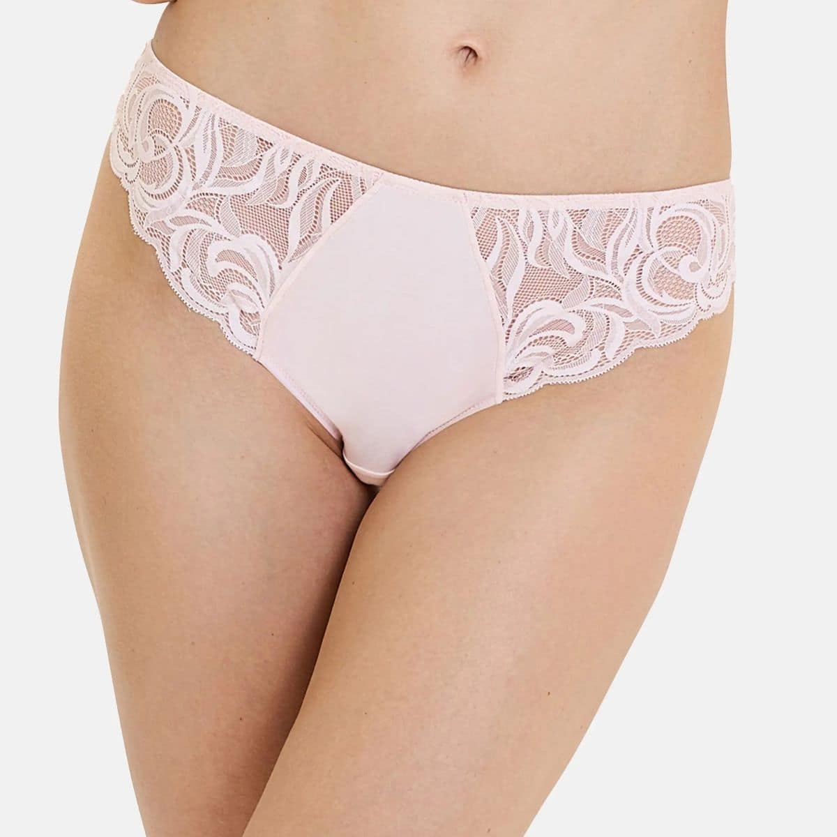 Medium coverage. Soft microfiber for absolute comfort. Back in discreet flat lace under your clothes. Cotton-lined gusset.