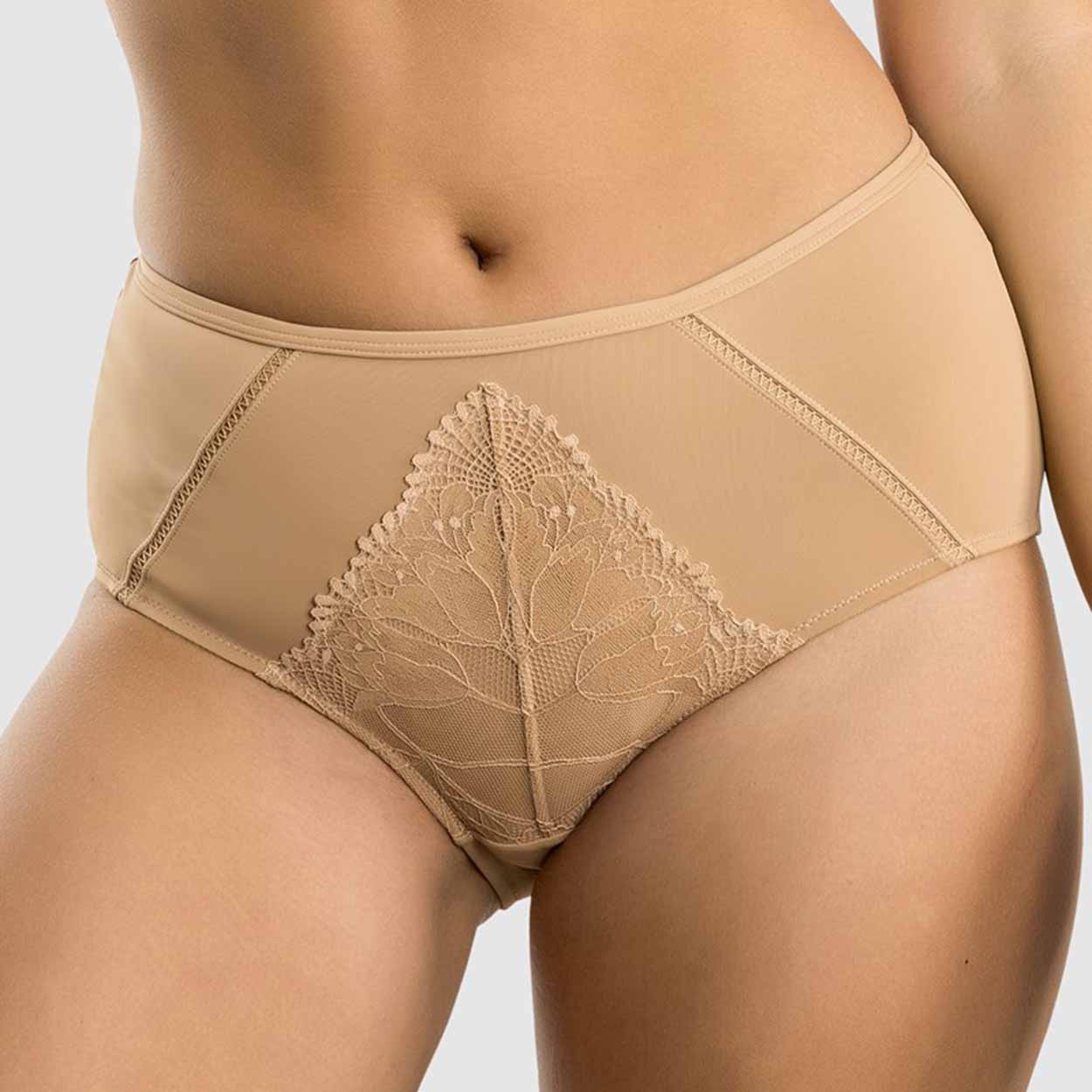 Timeless vintage charm meets modern comfort and style with the Charlene High Waist Brief. Crafted from soft, breathable fabric, this brief features a panel of romantic tulip-motif lace at the front. The high waistline offers a smoothing fit under clothes, while Gatsby-era Art Deco inspired trims are angled to enhance your curves, adding a sophisticated finish.