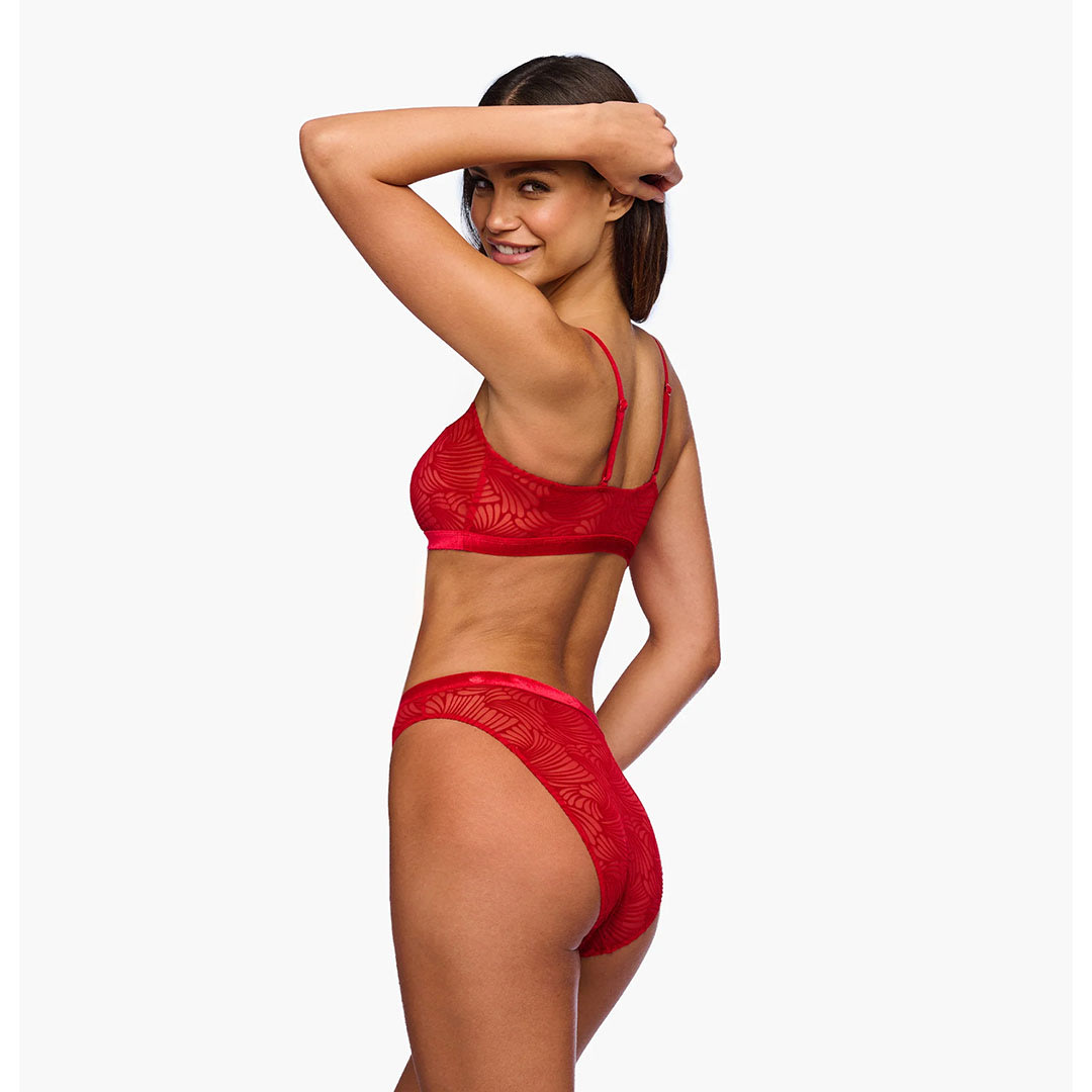 The Clancy High Leg Bikini Brief featuring lightweight, dig-free velvet elastic, a high-cut leg to enhance your shape, moderate rear coverage, and a cotton-lined gusset for ultimate comfort.