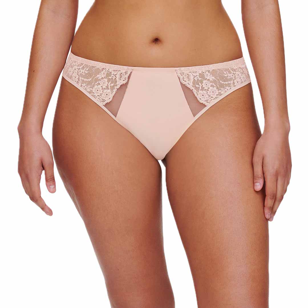 The Crush Tanga Brief is an everyday thong-style bottom combining floral lace, opaque knit, and elastic tulle with a semi-sheer finish throughout. It features a 100% GOTS-certified cotton gusset, is OEKO-TEX® Standard 100 certified, and is designed in France.