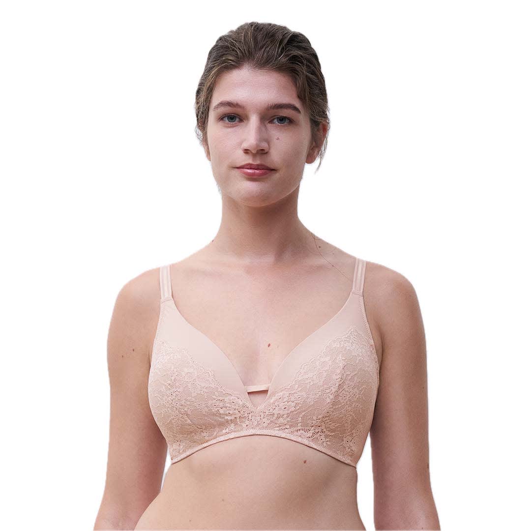 The Crush Wirefree T-Shirt Bra features a flattering plunging neckline and blends opaque knit with floral lace and elastic tulle for a smooth, feminine look. It has fully adjustable textured straps, a straight elasticated back for optimal support, is OEKO-TEX® Standard 100 certified, and is designed in France.