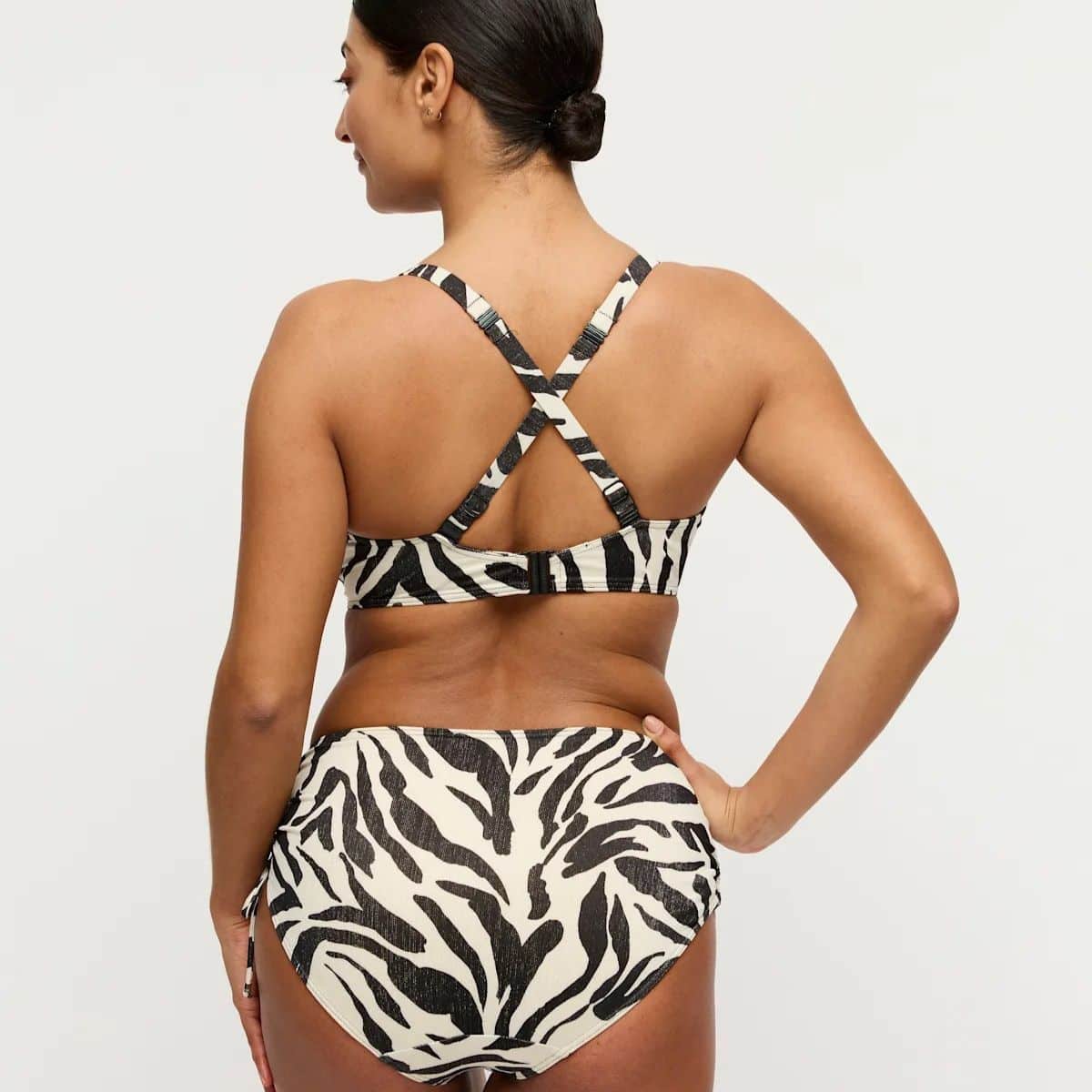 Poolside glam was never this comfy. Pure luxury! Elegant full bikini briefs with adjustable waist ropes. Cool print with a glitter effect.