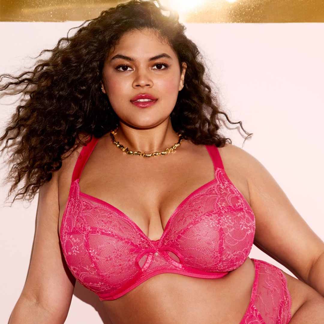 A delicate lace Darcie Plunge Bra featuring a three-tone design with a playful peek-a-boo centre detail, lightweight inner cups, and soft, premium finishes for a comfortable and elegant fit.