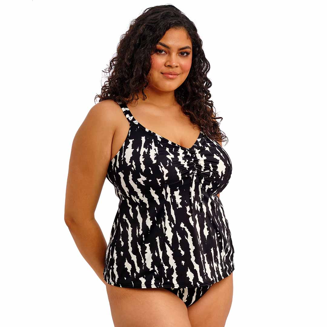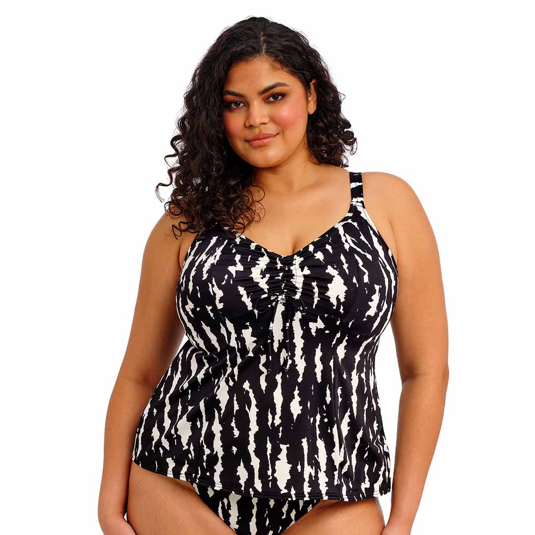 The Echo Shell Non-Wired Moulded Tankini Top features light seamless foam cups for a smooth, rounded shape with no show-through, supported by a powernet-lined upper back panel that helps anchor the bust. It includes a centre-front cutout with strapping detail, a gently flared silhouette, and is crafted from lightweight fabric with LYCRA® XTRA LIFE™ for durability. Adjustable shoulder straps allow for a personalised fit.