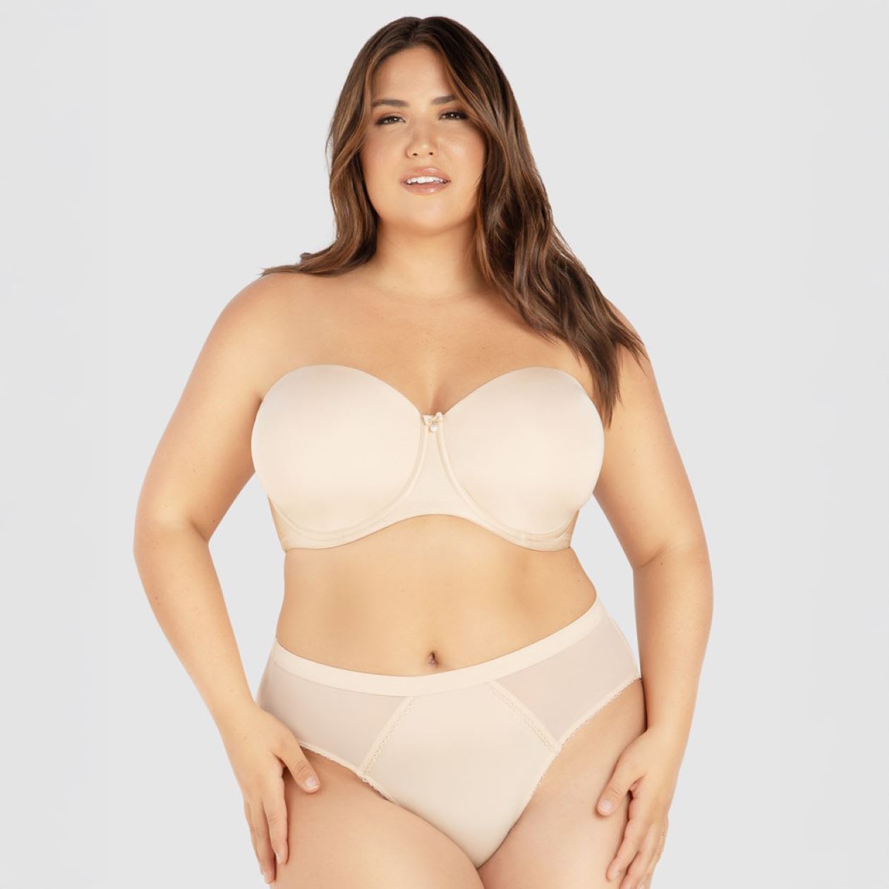 The Elise Multiway Seamless Strapless Bra is the ultimate versatile underpinning, designed to provide the perfect foundation for any neckline. Featuring underwired, seamless contour cups for a smooth silhouette, this bra includes daisy-embossed multiway straps that allow it to be worn as a regular, one-shouldered, halter neck, racerback, or strapless bra. To ensure it stays securely in place all day, it is engineered with silicone elastic and non-slip gripper fabric. This practical design is finished with an elegant tuxedo bow and pearl charm at the center, perfectly blending sophisticated style with reliable, multi-functional support.