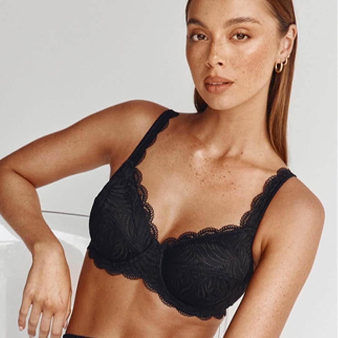 The Essential Lace Balcony Bra offers comfortable everyday support with elegant lace detailing for a refined look. Its underwire, non-padded three-piece cups create a beautifully rounded silhouette, while wide adjustable lace straps and fully lined cups and back panels provide added support.