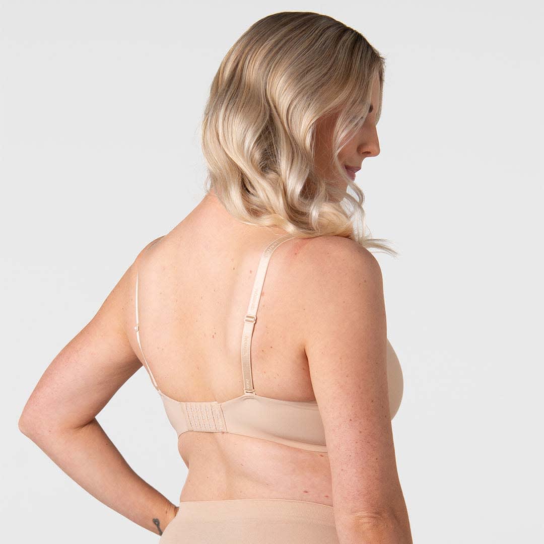 The Forever New T-shirt Nursing Bra is your go-to for smooth, effortless support – softer, lighter, and sleeker than ever before. Designed with ultra-light spacer foam for breathable, quick-drying wear without the bulk, it features a flexible underwire for gentle shaping and lift. Crafted inside and out for a barely-there feel, this is everyday comfort, refined.