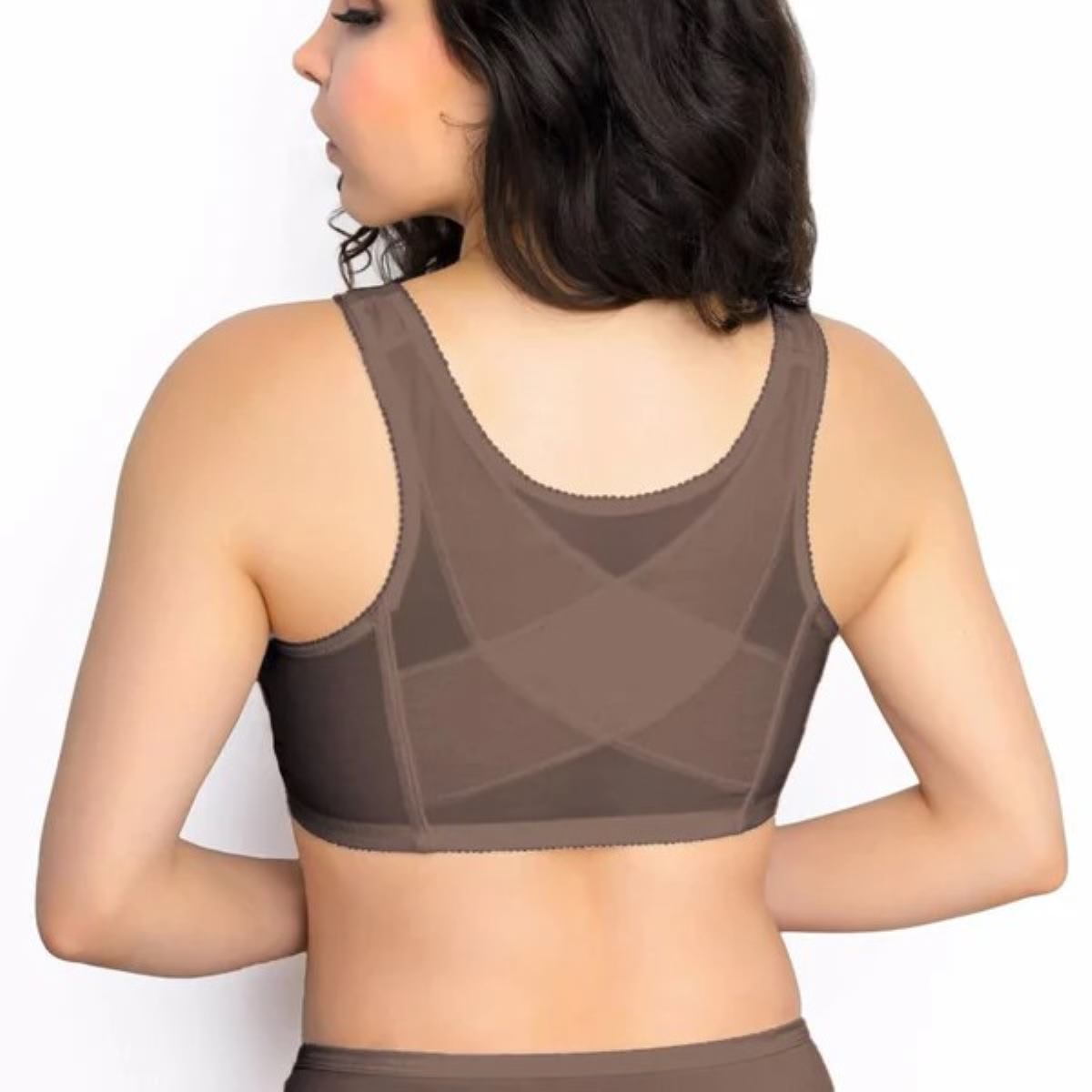 The Front Close Posture Lace Wirefree Bra is the perfect way to enjoy better bust support and a straighter back. It's a front closure bra with hook-and-eyes between the cups, which are wire free and made from a sturdy, supportive fabric on the lower half and a breathable sheer lace on the upper section. This posture-improving bra has an extra-tall back with criss-cross elastic, which has the added benefit of creating a smooth line under your clothing and is finished with padded straps for added comfort.