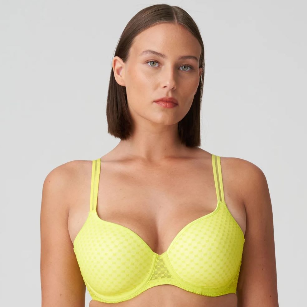 The Primadonna Twist Glass Beach Padded Heartshape Bra is a chic preformed bra featuring heart-shaped padded cups and a sheer overlay in polka dot tulle. With semi-sheer straps that seamlessly enhance your outfits, this black beauty offers a sexy minimalist look—ideal for a night out.