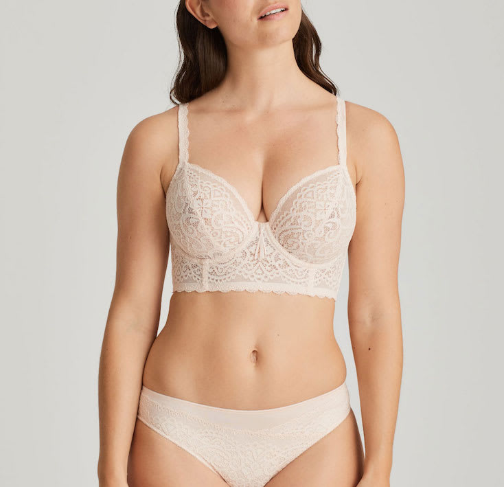 The I Do Plunge Longline Bra has the delicate look of a lace bralette with the comfortable fit of a longline bra. The trendy all-over lace is slightly sheer (including on the cups) and the wide lace panel under the cups provides extra support.