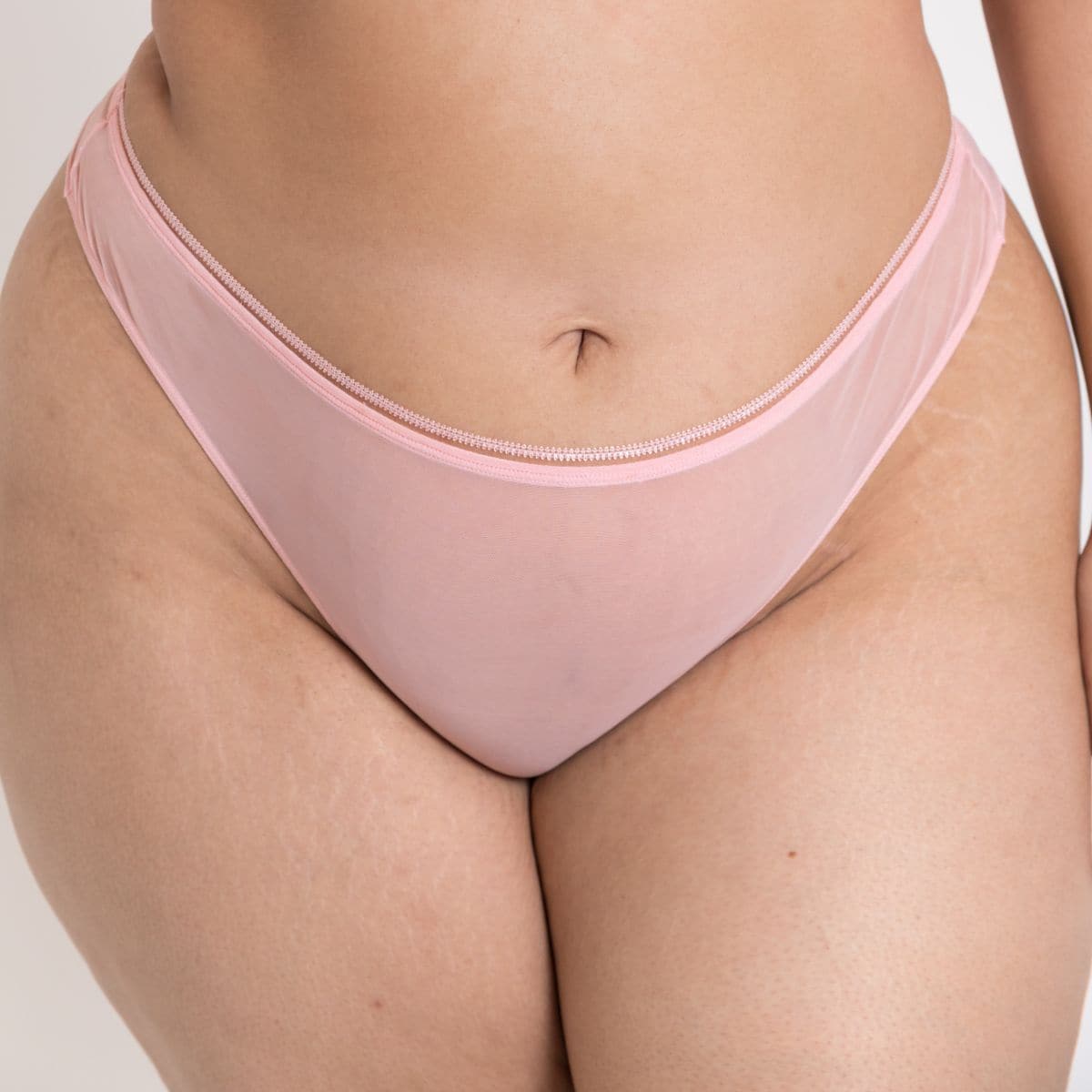 Sheer mesh with sport luxe styling. Hipster cut with a full, flattering back and a medium leg.