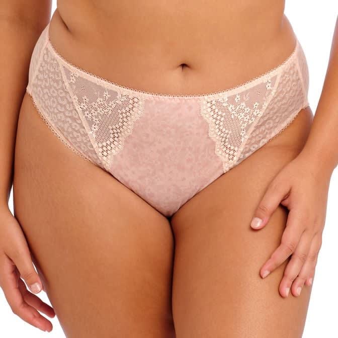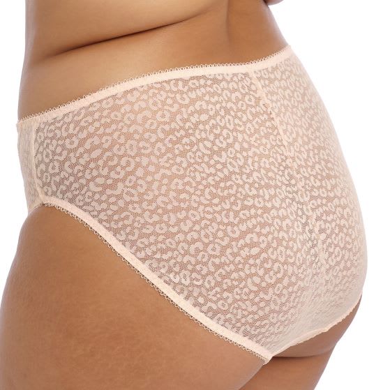 The printed front panel of Lucie High Leg Brief is cut from a soft stretch polyester Stretch lace panels at the side front.