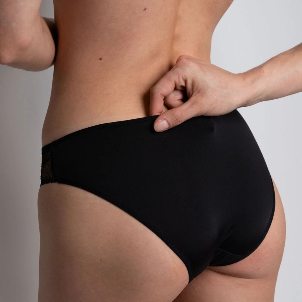 A comfortable brief, with a very feminine look. The signature details: panties on the front that combine the softness of cotton on the inside and striped tulle on the outside. Floral lace overlaps delicately dress the sides. A back made of soft and smooth microfiber, with perfect coverage