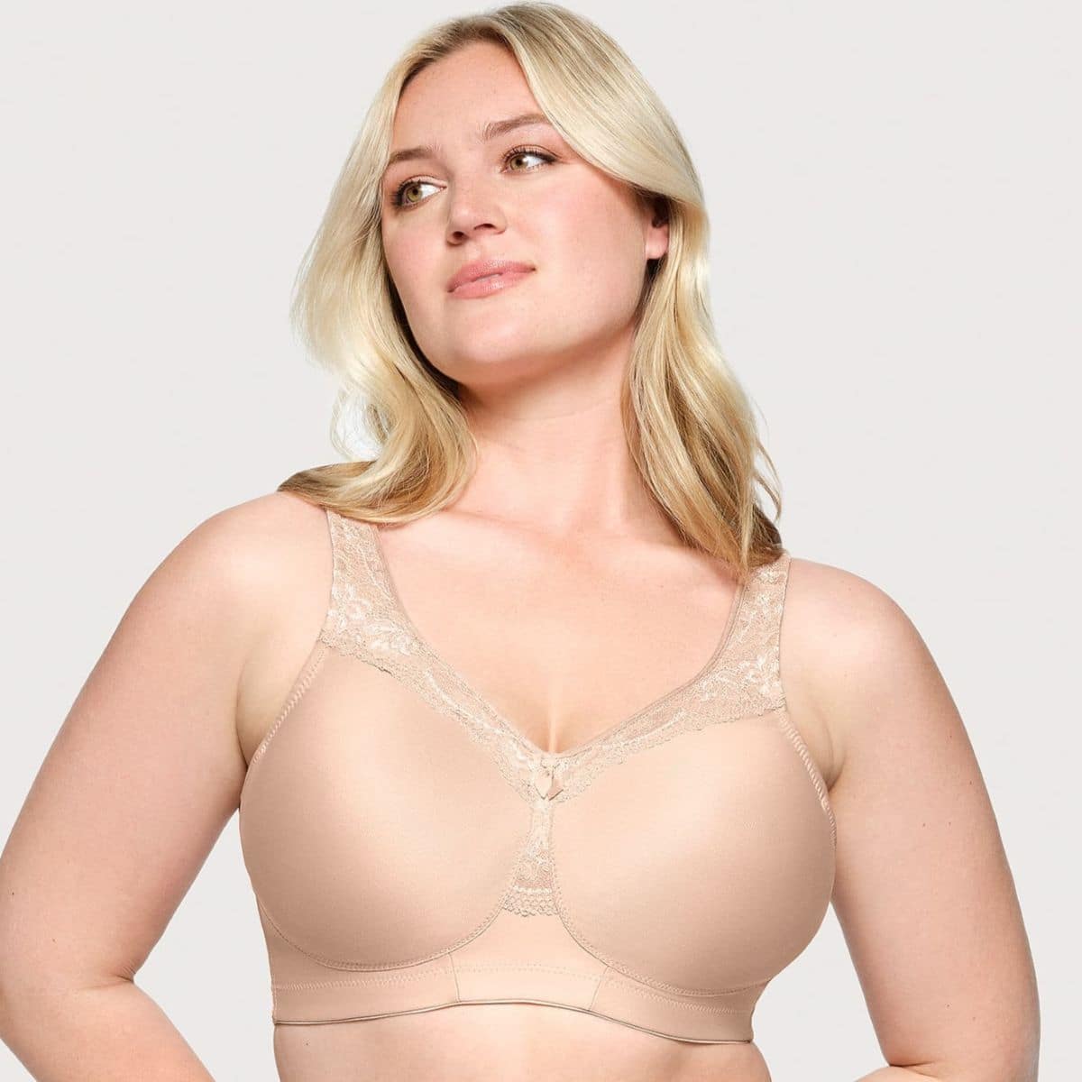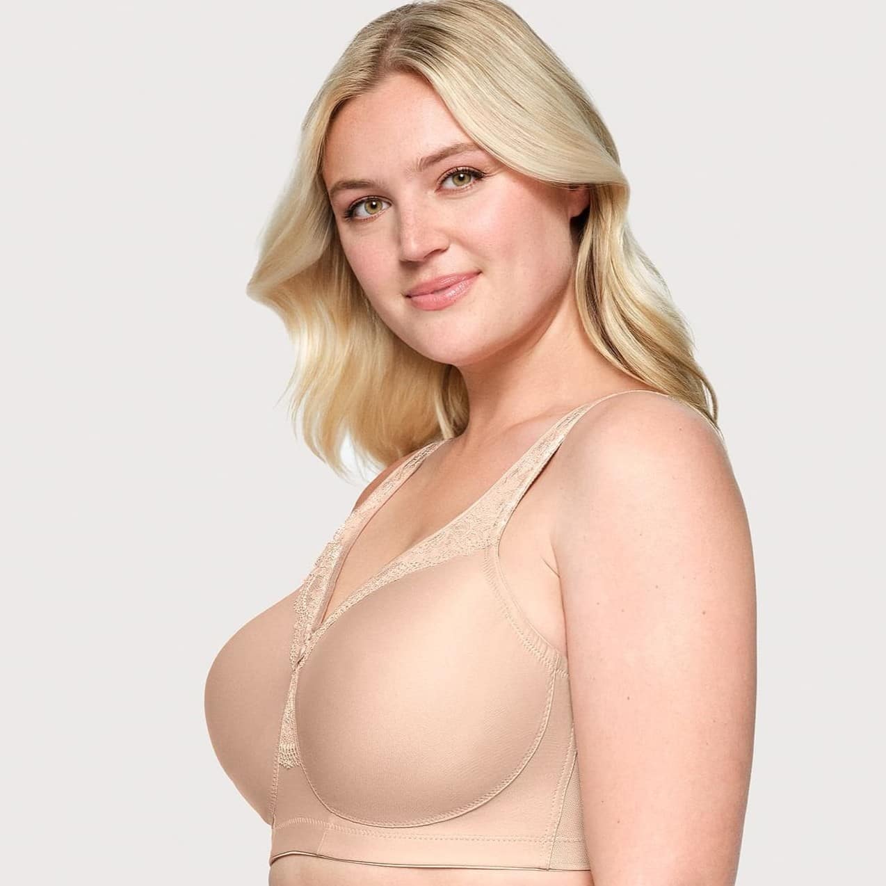 This bra lifts, shapes and supports without a wire. Seamless cups eliminate lines for a smooth silhouette. High-tech, sweat-wicking fabrics keep you cool and dry. Two-way stretch back moves with you.