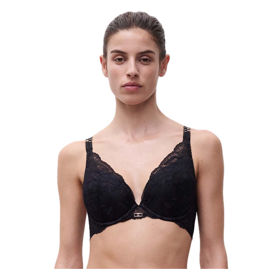 The Muse Push Up Bra with removable foam padding and striking floral lace. Features fully adjustable straps, OEKO-TEX® Standard 100 certification, and is designed in France.