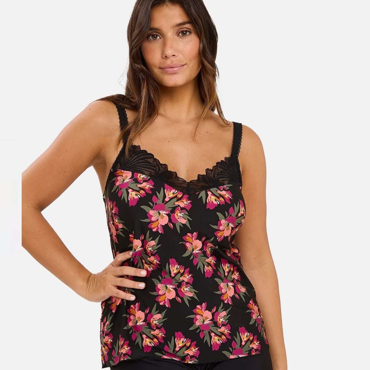 Discover the Oriane line, the perfect fusion of delicate lace and printed microfiber with a floral pattern.Soft, lightweight, and comfortable microfiber.Openwork and feminine lace at the neckline for a glamorous touch.