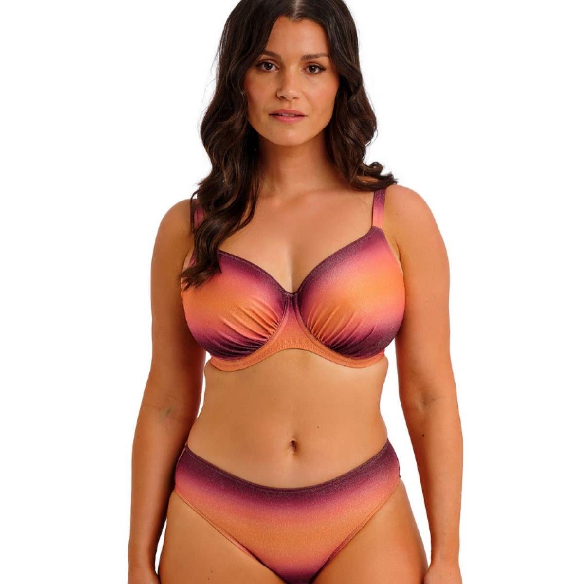 unset Glow captures the true beauty of holiday sunsets with its striking ombré design and rich, saturated colour palette. Designed to flatter all bust shapes, the gathered cups provide a beautifully contoured look, while fuller coverage cups with a concealed side sling offer enhanced support and a forward profile. Powernet-lined wings ensure added stability and anchorage, and the fixed, fully adjustable shoulder straps allow for a comfortable, customised fit—making Sunset Glow both stylish and supportive for all-day wear.