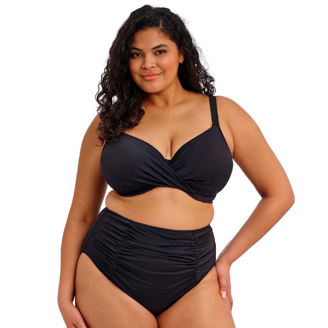 Inspired by the Plain Sailing ES7284 Plunge Bikini Top, the Plain Sailing Wrap Plunge Bikini Top features a stretch powernet inner top cup with a wrap-front outer layer for comfort and ease of fit. It is fully lined with a light yet supportive inner bra structure, giving a true bikini look with the reliable fit of an Elomi lingerie bra.
