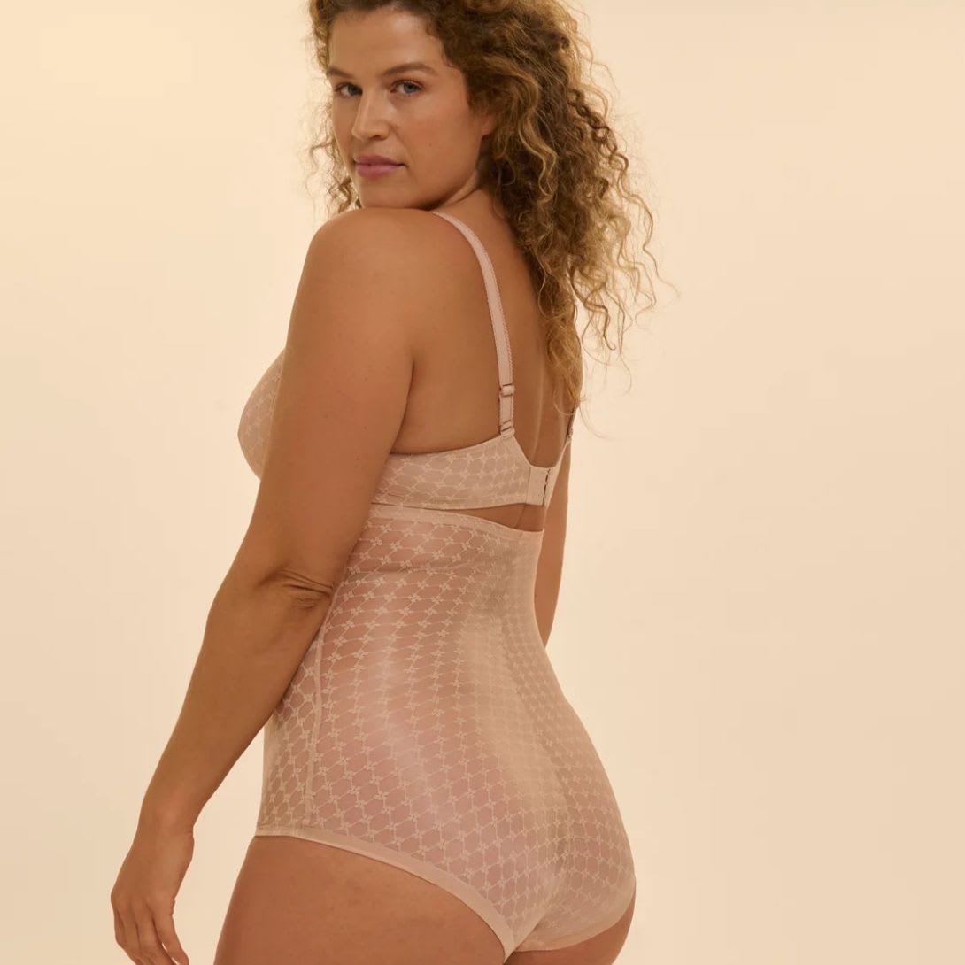 High-waist shaping brief with light control. Full coverage back for smoothing effect. Stretch tulle inspired by Simone Pérèle's 1970s archives. Ultra-high waistband to sculpt the waist. Lightweight and seamless finish. Cotton-lined gusset for everyday comfort.