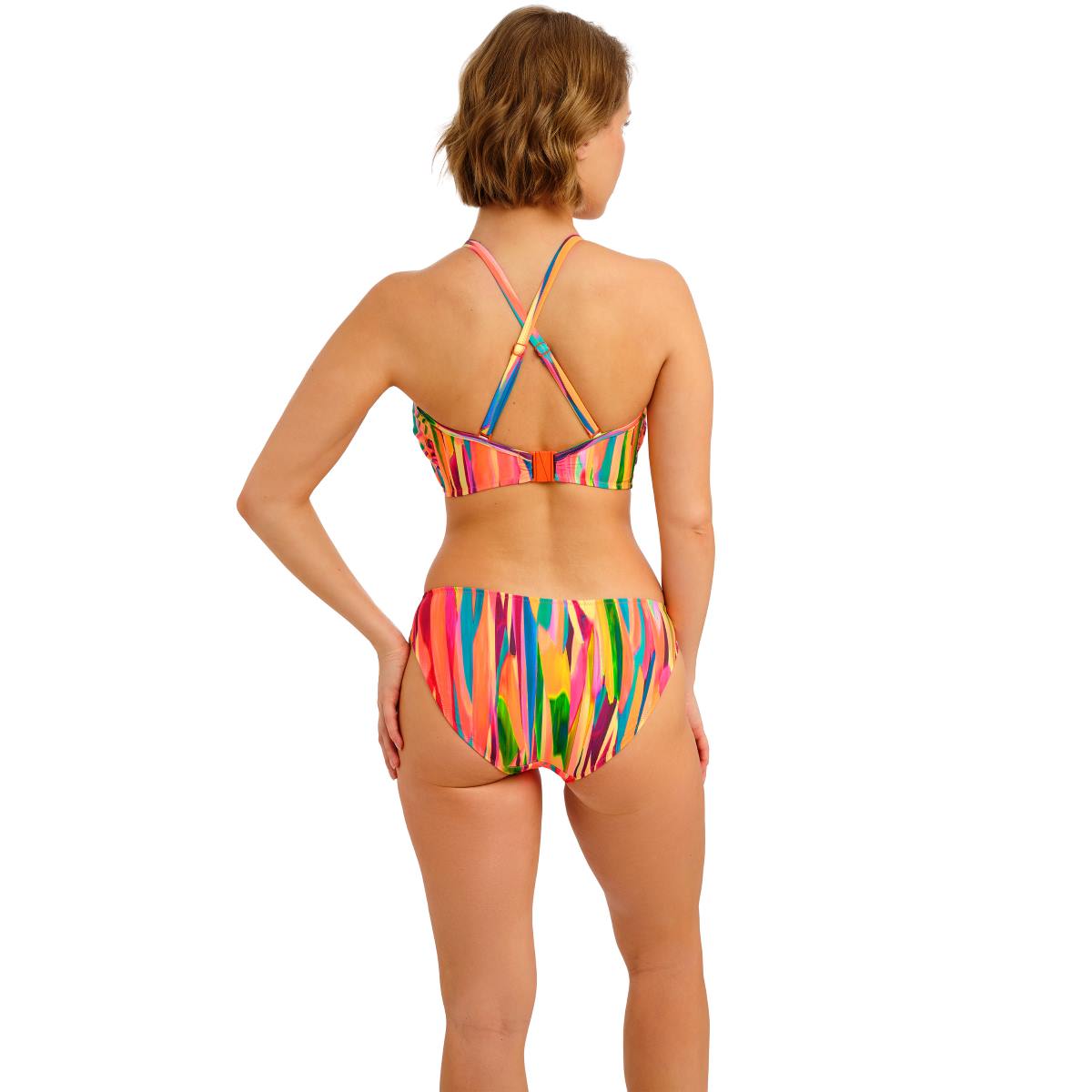 Soak up the sun in San Antonio, our vibrant new print and a must-have this season. Featuring a painterly blend of bold oranges, pinks, and yellows with pops of teal and green, this striking design delivers the ultimate fiesta vibe with on-trend styling. Underwired, lined cups provide great shape and support, while flattering gathers at the bust enhance your silhouette. The detachable, adjustable straps allow you to wear it over the shoulders or cross-back, and the removable neck tie gives you the freedom to style it your way.