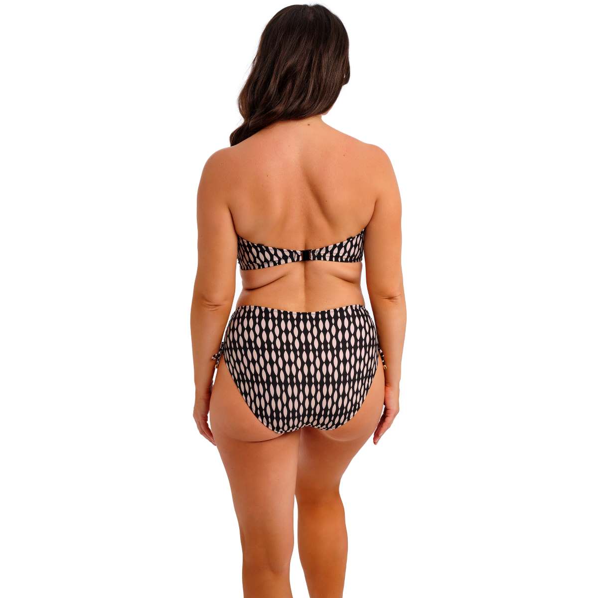 Feel supported and sun-ready with Shell Bay, a chic swimwear piece featuring a striking graphic design in a black and muted blush colourway for an elevated poolside look. Thoughtful details complete the collection, including hammered-effect gold ring accents on the straps that won’t heat up in the sun. The lightly padded foam cups provide support and a smooth, rounded shape, while the twist front creates a flattering sweetheart neckline. Concealed underwire and powernet-lined wings offer additional support and anchorage, and detachable scarf tie straps add versatility and style. Perfect for swimwear that feels as good as it looks.