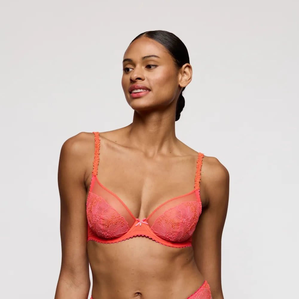 Fashion meets elegance with shimmery embroidery. Comfy non-padded wired bra. Sexy and cool transparent look.