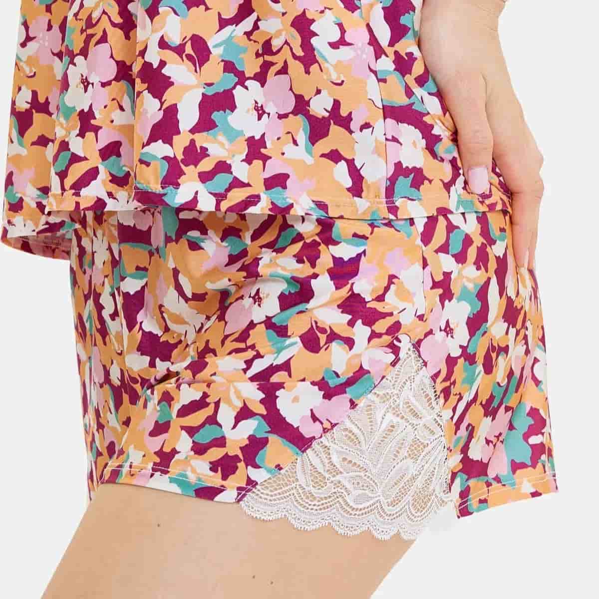 The Suzan Fantaisy line comes in a set of ultra comfortable and cozy pajamas. Short. Moderate coverage. Flowing cut. Ultra soft printed microfiber. Fine lace insert on the side.