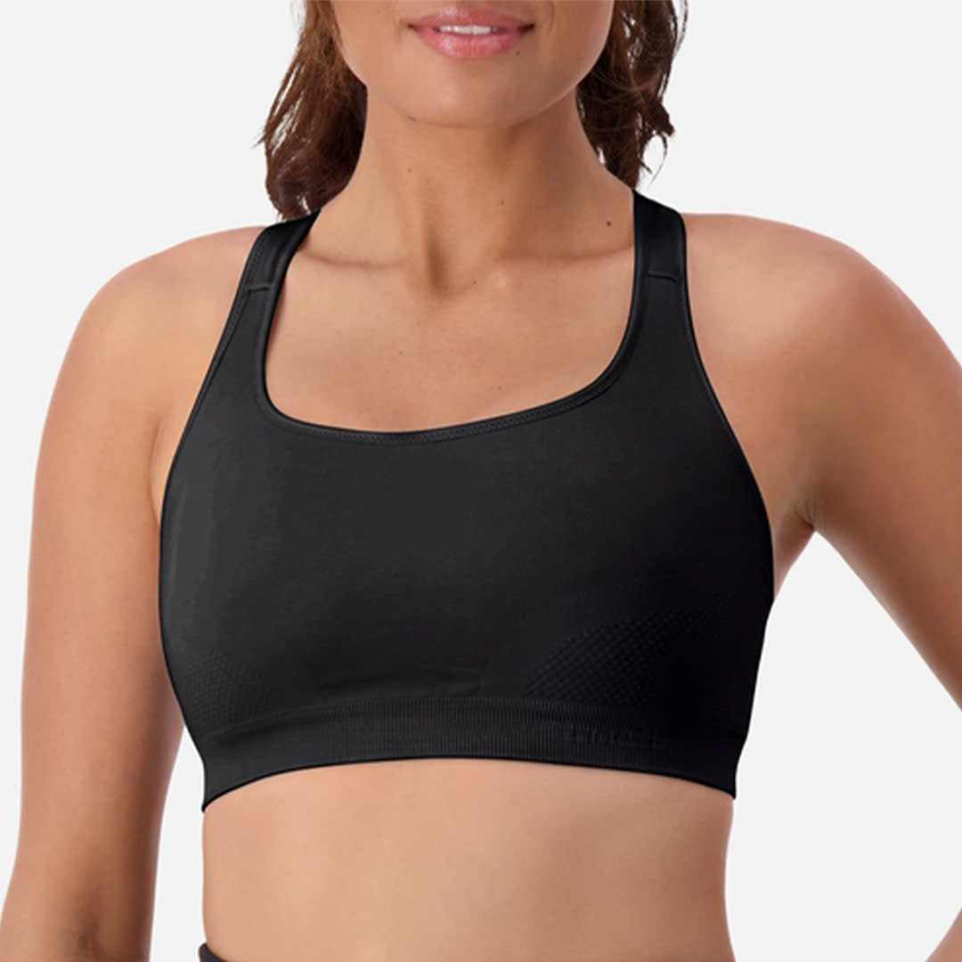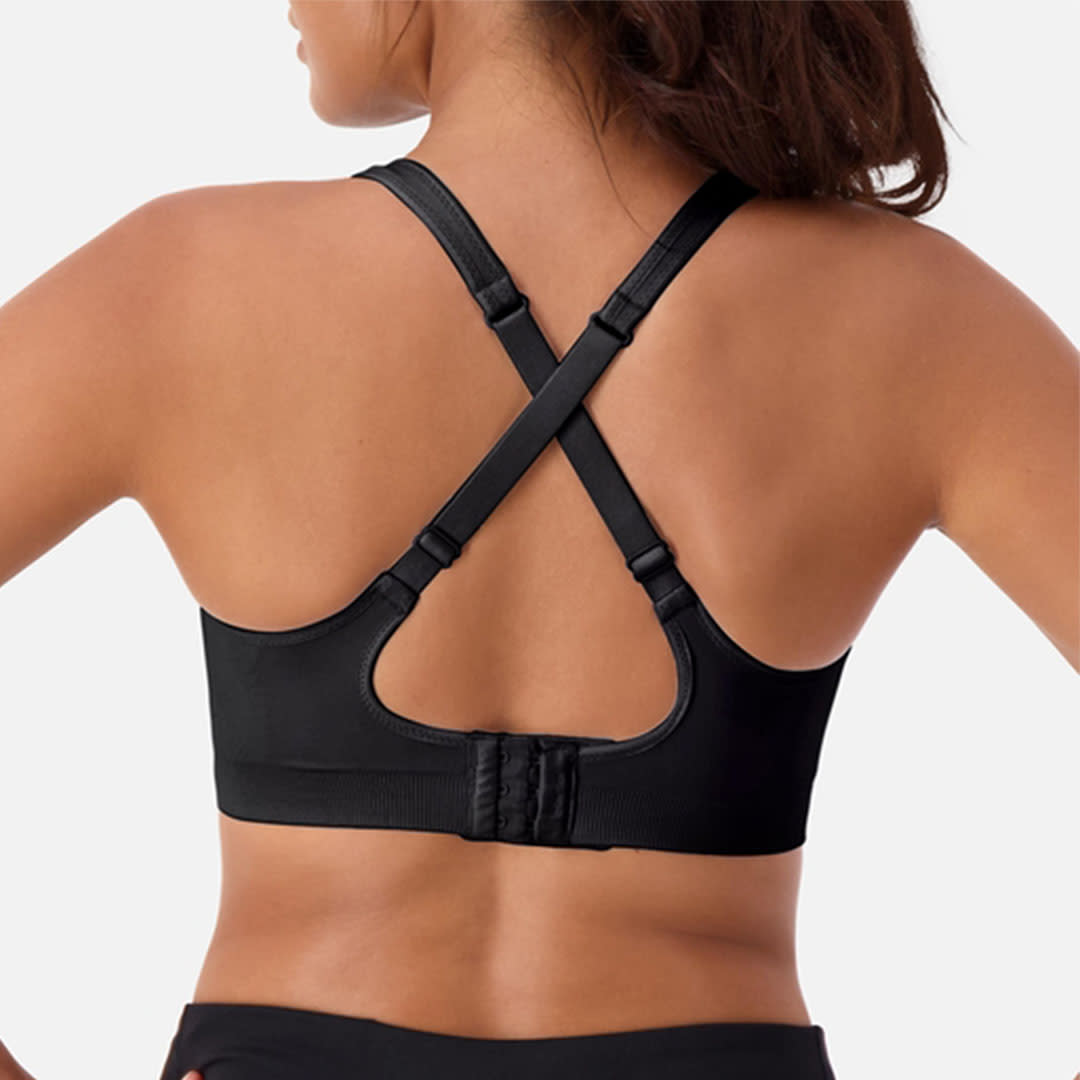 The Triaction Ultra Seamfree Crop Top has crossover straps and a double-layered front panel that holds the bust firmly in place; it is perfect for sports and versatile enough to wear under clothes or on its own.