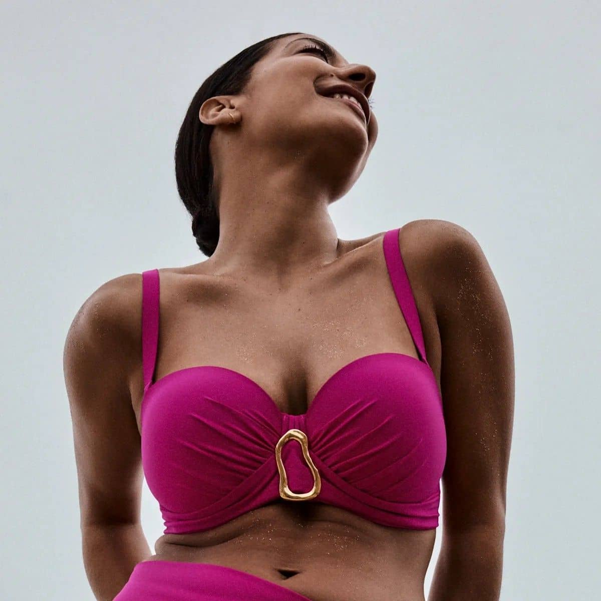 Padded strapless bikini top for a flawless, tanline-free glow.